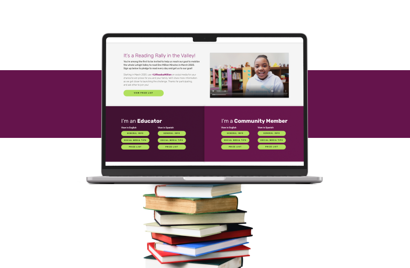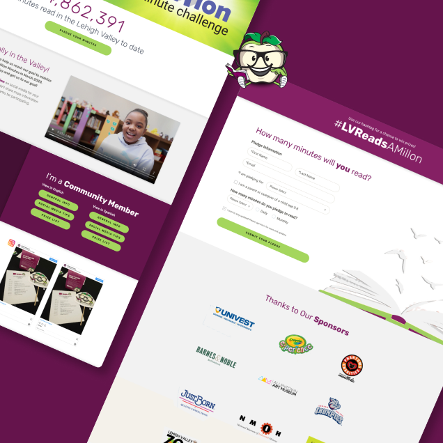 Our team took on building out Lehigh Valley (LV) Reads’ website and the development of their Million Minute Challenge campaign. This was a part of a national campaign that LV Reads took part in as a marketing opportunity.